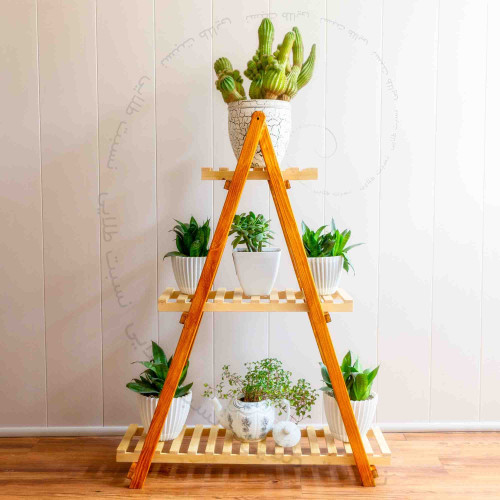 استند پایه گلدان چوبی طرح مثلثی دیاموند 3 طبقه