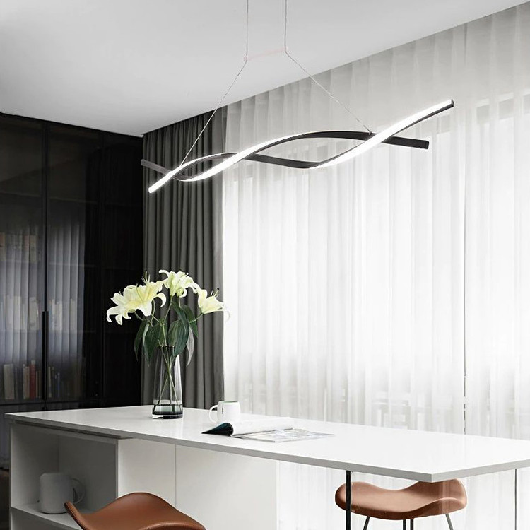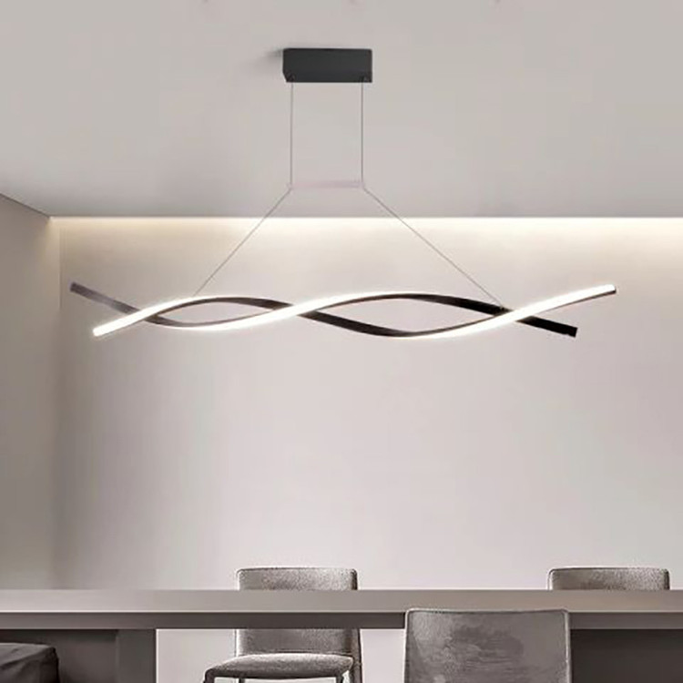 آویز فوق تشکیل شده از خطی نوری درهم تنیده به طول 100 سانتیمتر ،که با بدنه مشکی ارائه شده ،نور (چند رنگ ) قابل انتخاب می باشد. با ریموت و اپلیکیشن موبایل میتوان نور را به آفتابی ،مهتابی و نچرال تغییر داد ،نور را کم وزیاد، و خاموش و روشن ، و یا به حالت شب تغییر بدهید .