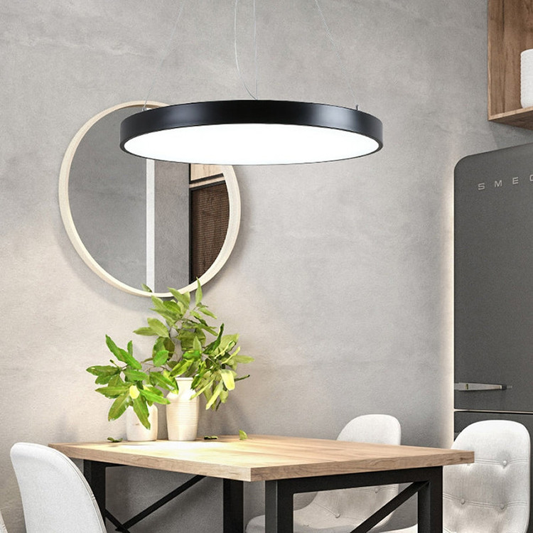 آویز مدرن دایره به قطر 60 سانتیمتر ،که با بدنه مشکی ارائه شده ،نور (چند رنگ ) قابل انتخاب می باشد. با ریموت و اپلیکیشن موبایل میتوان نور را به آفتابی ،مهتابی و نچرال تغییر داد ،نور را کم وزیاد، و خاموش و روشن ، و یا به حالت شب تغییر بدهید .