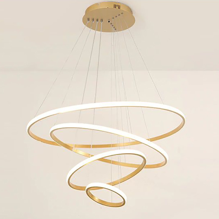 این مدل لوستر چهار حلقه نور به بیرون ،با قطرهای 35-50-70-90 می باشد ،که با بدنه طلایی ارائه شده ، و در سه رنگ نور ،آفتابی و مهتابی و همزمان هردو (چند رنگ ) قابل انتخاب می باشد. ارتفاع لوستر از 20 سانت تا 80 سانت قابل تغییر است ،همچنین می توانید چیدمان لوستر را ، به طبقاتی یا کهکشانی تغییر دهید. با ریموت و اپلیکیشن موبایل میتوان نور لوستر را کم و زیاد کرد ،طبقات را خاموش و روشن کرد ،و همچنین دکمه حالت شب از امکانات ریموت می باشد.و همچنین تغییر رنگ نور در مدل چندرنگ .