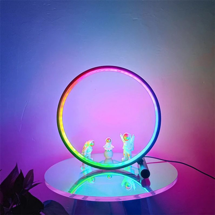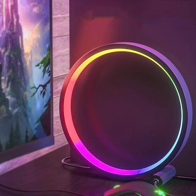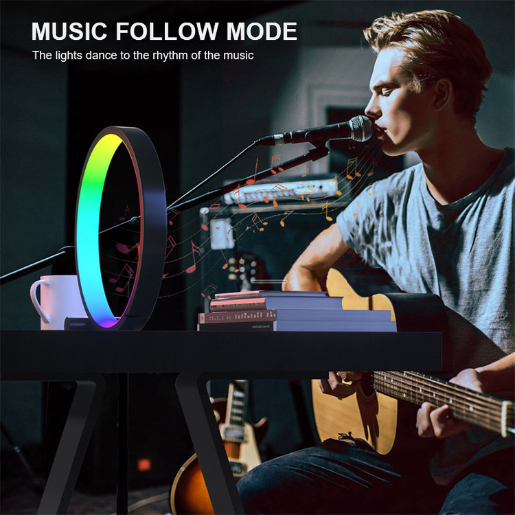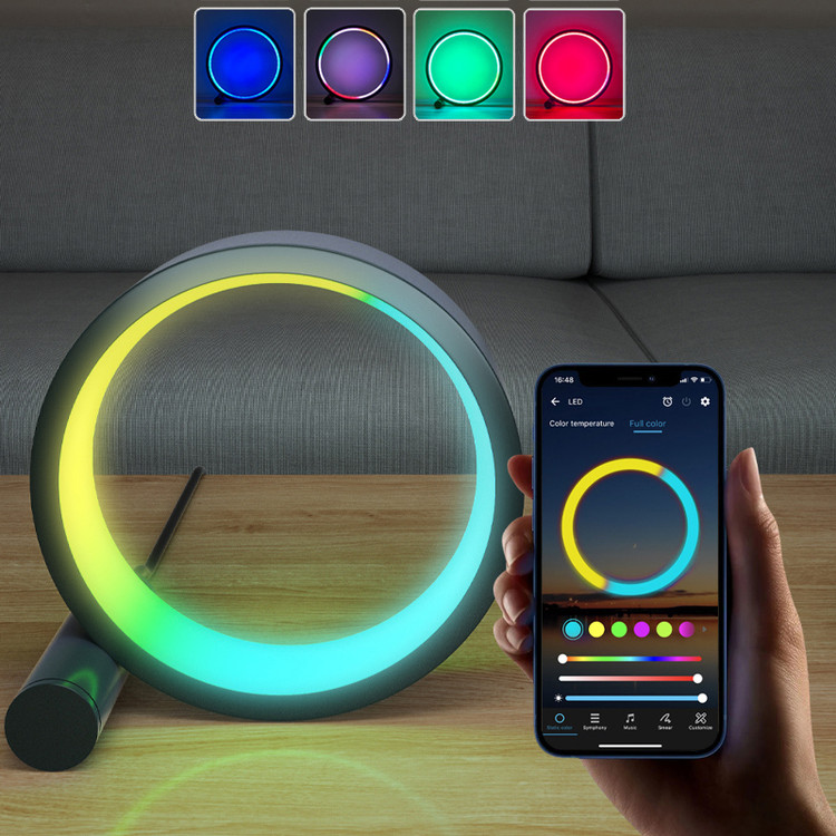 چراغ خواب رینگ RGB مجهز به بلوتوث و اپلیکیشن برای اندروید و iOS است. تکنولوژی LED های به کار رفته در این محصول از نوع A-RGB می باشد که به صورت آبشاری رنگ ها را نمایش می دهد.با تهیه این محصول قادر به انتخاب 16 میلیون رنگ هستید.استفاده از این تنوع رنگی باعث شده تا هیچوقت خانهتان برایتان تکتایمر برای لامپ ها فضای خانهراری نشود. علاوه بر رنگ میتوانید میزان روشنایی را هم برای لامپتان مشخص کنید. برای مثال در شب هنگام خواب، میتوانید با کم کردن نور لامپها وفعال کردن تان را برای خوابیدن آماده کنید. شما میتوانید با آهنگ مورد علاقه ی تان و یا میکروفن گوشی رقص نور متناسب با موزیک را تجربه کنید.طراحی ساده و به اصطلاح مینیمال این محصول منجر شده تا علاوه بر روشنایی محل نصب، زیبایی منحصر به فردی را در آن محیط ایجاد نماید. این وسیله را می توان در بسیاری از مکان ها همچون اتاق خواب ،اتاق گیمینگ، اتاق مطالعه و غیره استفاده نمود.قطر حلقه 20 سانتیمتر می باشد.