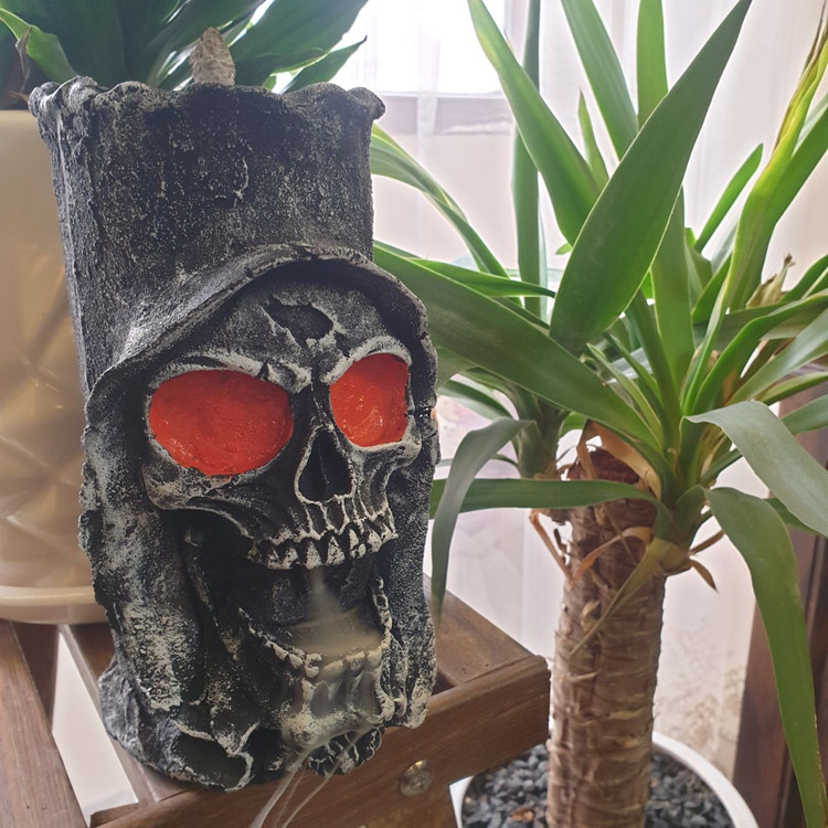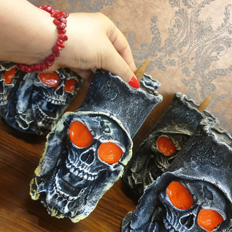 جاعودی آبشاری طرح جمجمه انسان ، در ابعاد 20x10x10 سانتیمتر از جنس پلی استر طراحی و تولید شده است، که علاوه بر زیبایی بصری، به شما حس آرامش نیز میدهد. تنها کافیست از عودهای آبشاری که در زیر آنها سوراخ تعبیه شده استفاده نمایید و آنر در محل مخصوص عود در بالای جاعودی قرار دهید، بعد از روشن کردن نوک عود و گذشت یک دقیقه از سوختن آن دود به جای روند رو به بالا به صورت آبشاری، شروع به حرکت به سمت پایین خواهد کرد، پس چنانچه بعد از روشن کردن بلافاصله شاهد پایین آمدن دود نبودید به آن یک تا دو دقیقه زمان بدهید. هر عود حدود 15 دقیقه دود خواهد کرد و باعث ایجاد فضایی دلنشین و مطبوع در محیط پیرامون شما خواهد شد. برای نمایش زیباتر دود آن، میتوانید یک چراغ ال ای دی بر روی دود بتابانید.به همراه این جاعودی ، تعداد 2 عود آبشاری با رایحه دلنشین نیز به عنوان هدیه قرار داده شده است.