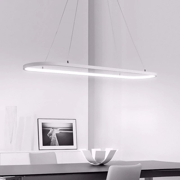 لوستر سقفی بیضی به ابعاد30x120 ،رنگ بدنه سفید استاتیک ،در دو نوع (آفتابی ،مهتابی ارائه میشود .ارتفاع قبل تنظیم است .مناسب برای میز نهارخوری ، میز بیلیارد ،اپن آشپزخانه ،کانتر ،میز منشی و میز کنفرانس