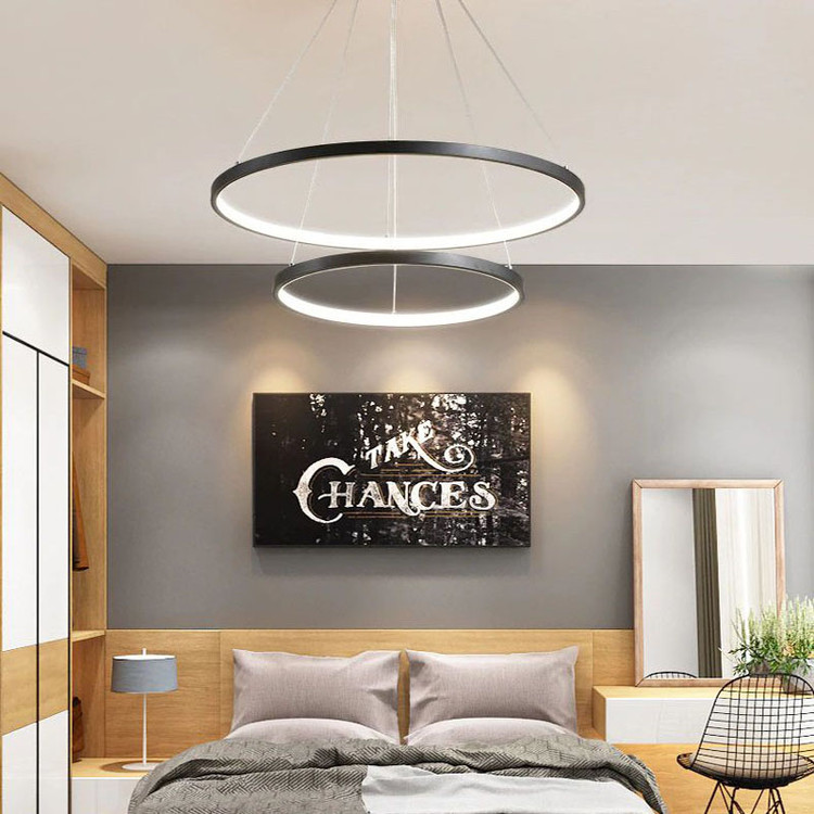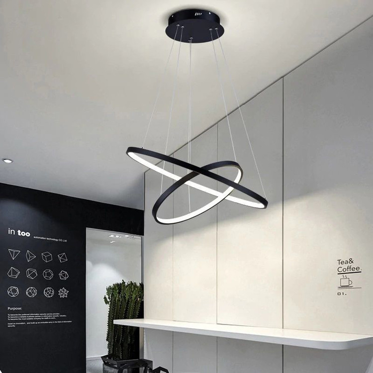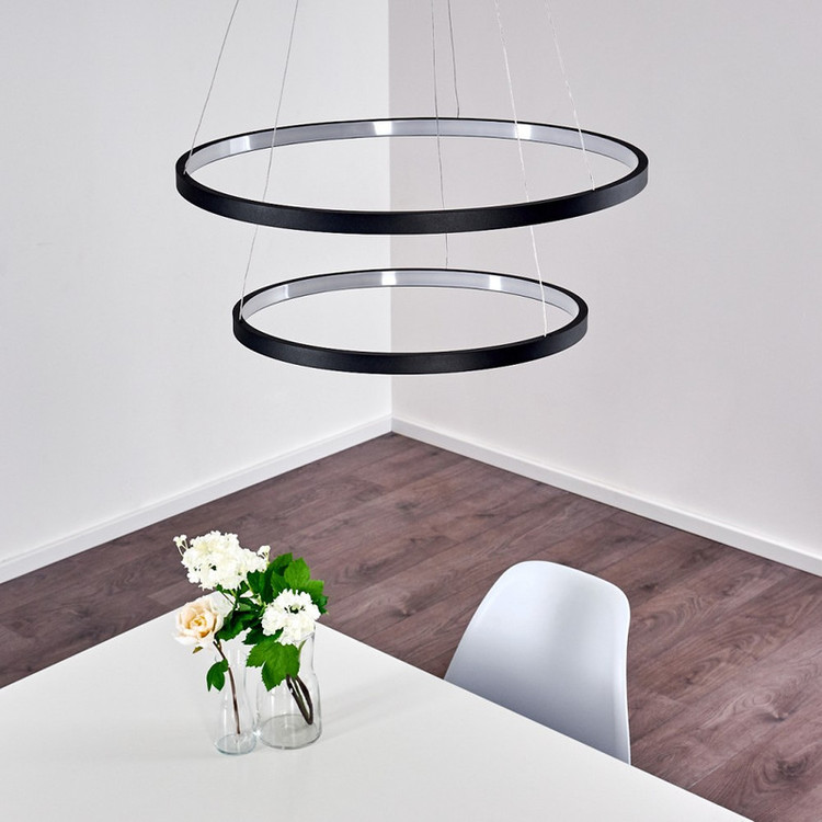 لوستر دو حلقه دایره به ابعاد 35-50 سانتیمتر ،رنگ بدنه مشکی استاتیک ،در سه نوع (آفتابی ،مهتابی و چند رنگ) ارائه میشود ،از امکانات ریموت می توان کم و زیاد کردن نور ،حالت شب ،اپلیکیشن موبایل(کم و زیاد کردن نور ،تغییر طیف نوری ،تنظیم زمان برای خاموش یا روشن شدن ) ارائه میشود
