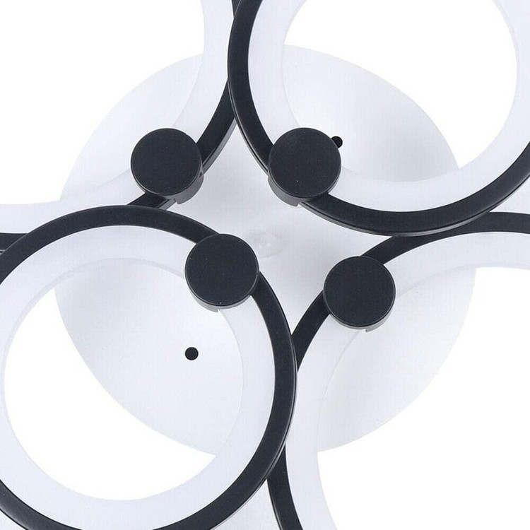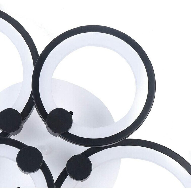 این مدل لوستر چهار حلقه ،با قطرهای 30و40 می باشد ،که با بدنه مشکی ارائه شده ، و در سه رنگ نور ،آفتابی و مهتابی و همزمان هردو (چند رنگ ) قابل انتخاب می باشد. ارتفاع لوستر از 15 سانتیمتر و مناسب فضاهای با ارتفاع کم می باشد.