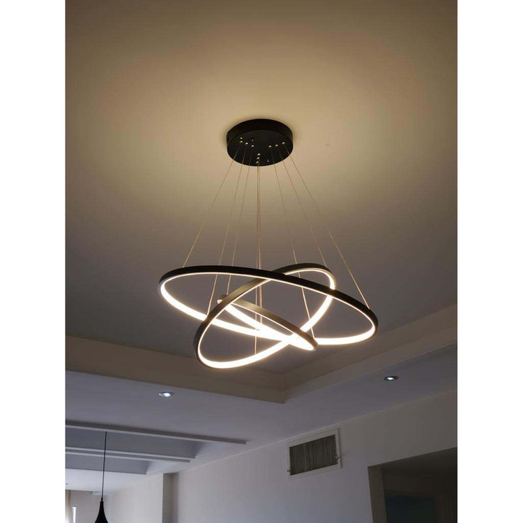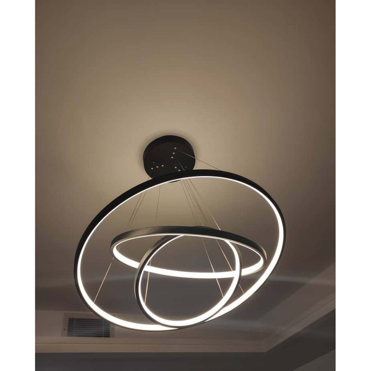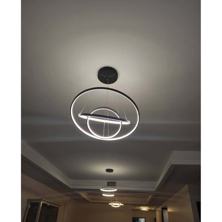 این مدل لوستر سه حلقه ،با قطرهای 70-50-35 می باشد ،که با بدنه مشکی ارائه شده ، و در سه رنگ نور ،آفتابی و مهتابی و همزمان هردو (چند رنگ ) قابل انتخاب می باشد. ارتفاع لوستر از 20 سانت تا 80 سانت قابل تغییر است ،همچنین می توانید چیدمان لوستر را ، به طبقاتی یا کهکشانی تغییر دهید. با ریموت و اپلیکیشن موبایل میتوان نور لوستر را کم و زیاد کرد ،طبقات را خاموش و روشن کرد ،و همچنین دکمه حالت شب از امکانات ریموت می باشد.