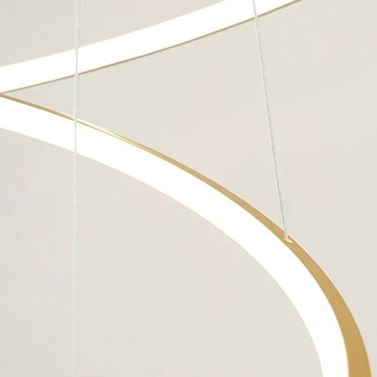 این مدل لوستر چهار حلقه نور به داخل ،با قطرهای 35-50-70-90 می باشد ،که با بدنه طلایی ارائه شده ، و در سه رنگ نور ،آفتابی و مهتابی و همزمان هردو (چند رنگ ) قابل انتخاب می باشد. ارتفاع لوستر از 20 سانت تا 80 سانت قابل تغییر است ،همچنین می توانید چیدمان لوستر را ، به طبقاتی یا کهکشانی تغییر دهید. با ریموت و اپلیکیشن موبایل میتوان نور لوستر را کم و زیاد کرد ،طبقات را خاموش و روشن کرد ،و همچنین دکمه حالت شب از امکانات ریموت می باشد.و همچنین تغییر رنگ نور در مدل چندرنگ .