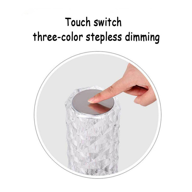 آباژور رومیزی کریستالی طرح رز، یک تجربه بینظیر از تلفیق نور و شیشه میباشد. این محصول با استفاده از فناوری سه بعدی، کاری میکند تا نور و سایه در هم تنیده شوند تا لایه های گل رز روی میز شکوفه دهند. این آباژور کریستالی با روشنایی و زیبایی ای که دارد میتواند فضایی کاملا شیک و مدرن را برای شما به ارمغان بیاورد و در تمامی مجالس و مکان ها جلوه ای ویژه از زیبایی را بوجود آورد. برای تنظیم روشنایی؛ بالای لامپ را لمس کنید. 6 سطح تنظیم از تیره تا روشن وجود دارد. شما می توانید آزادانه روشنایی نور مناسب را انتخاب کنید. رنگ روشن، زرد گرم، کهربایی، بنفش-قرمز، فیروزه ای، آبی و غیره. طراحی سوئیچ لمسی که در بالای آباژور وجود دارد میتواند به شما کمک کند تا براحتی رنگ های آباژور را تنها با لمس کردن تغییر داده و یا حتی آباژور را خاموش کنید. آباژور رومیزی کریستالی طرح رز، دارای باطری با طول عمر بالا و به راحتی با کابل USB شارژ میشود. مدت زمان شارژ کامل دستگاه از 1-3 ساعت، و مدت زمان روشن ماندن آن برای 10-12 ساعت به صورت مستمر میباشد، شارژ آباژور از طریق پورت usb بسیار راحت است و علاوه بر این محصول دارای ریموت کنترل جدا میباشد تا از فاصله ی دور نیز بتوان به صورت کامل میزان نور و رنگ و خاموش و روشن شدن آباژور را کنترل کرد.آباژور طرح رز را میتوان برای کمپینگ، مسافرت، موقعیتهای اضطراری و سایر نیازهای روشنایی نیز استفاده کرد.این چراغ برای تمامی فضاها اعم از میز کنار تخت و اتاق خواب، اتاق نشیمن، اتاق غذاخوری، اتاق مطالعه، دیزاین دکوراسیون ، اتاق های صنایع دستی، راهروها، کمدها، هتل ها، ادارات و غیره مناسب است.