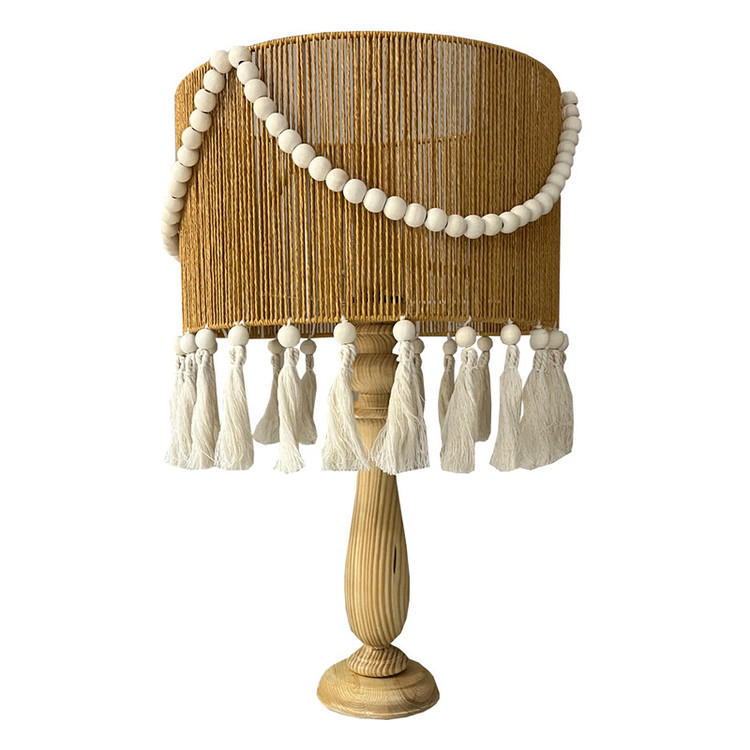 این محصول به صورت تک رنگ و دقیقا مطابق عکس ارسال میگردد. متریال های مصرفی شامل پایه چوب طبیعی خراطی شده ، کفی چوبی ، شید اباژور فلزی ، نخ رافیا حصیری (الیاف طبیعی و قابل شست و شو ) ، منگوله های نخ مکرومه ، مهره چوبی است . همچنین این آباژور به همراه سیم کلید دار ، پاتروم عرضه میشود.