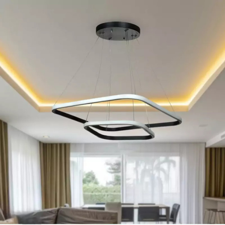 _لوستر مدرن مربع متشکل از 2 مربع به ابعاد 30 و 50 سانتی متر _موجود در رنگ مشکی دارای چهار حالت آفتابی،مهتابی،نچرال و حالت شب _قابل کنترل با ریموت کنترل و اپ موبایل _نور این لوستر به بیرون است که برخلاف نور داخل،پخش نور بالایی دارد. _آلومینیوم به کار رفته فابریک می باشد که در انتقال حرارت و در نتیجه عمر کار تاثیر زیادی دارد. _این محصول به طور مستقیم و بدون واسطه با بالاترین کیفیت و نازل ترین قیمت از تولیدی به دست شما میرسد. _ارتفاع این لوستر از 30 سانتی متر تا 1 متر قابل تنظیم است و با تغییر ارتفاع می توان طرح های مختلفی ساخت. _ریموت کنترل به همراه محصول ارسال می شود. _دارای گارانتی و خدمات پس از فروش