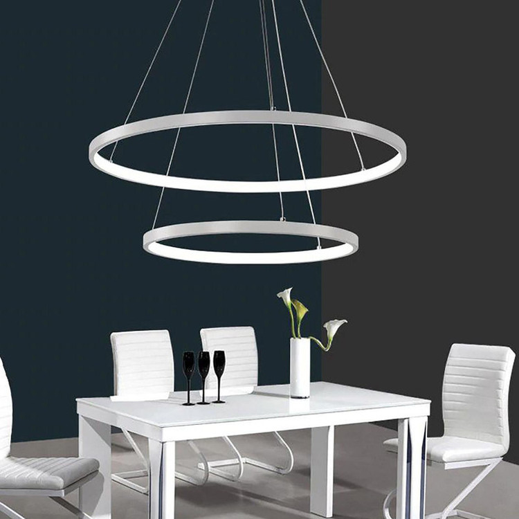 لوستر دو حلقه دایره به ابعاد 50_70 سانتیمتر، رنگ بدنه سفید استاتیک در سه نوع (آفتابی -مهتابی-چندرنگ) ارائه میشود. ارتفاع لوستر از 20 تا 80 سانتیمتر قابل تغییر است، همچنان میتوانید چیدمان لوستر را از طبقاتی به کهکشانی یا بالعکس تغییر دهید . با ریموت و اپلیکیشن موبایل میتوانید نور لوستر را کم وزیاد ،خاموش روشن و یا به حالت شب تغییر بدهید.