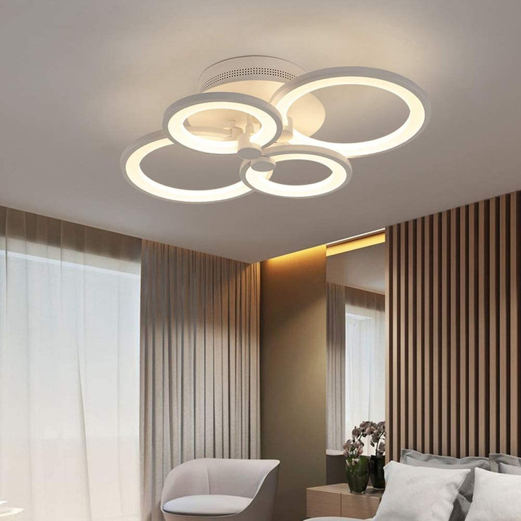 این مدل لوستر چهار حلقه ،با قطرهای 30و40 می باشد ،که با بدنه سفید ارائه شده ، و در سه رنگ نور ،آفتابی و مهتابی و همزمان هردو (چند رنگ ) قابل انتخاب می باشد. ارتفاع لوستر از 15 سانتیمتر و مناسب فضاهای با ارتفاع کم می باشد.