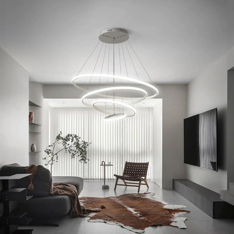 این مدل لوستر چهار حلقه نور به بیرون ،با قطرهای 35-50-70-90 می باشد ،که با بدنه سفید ارائه شده ، و در سه رنگ نور ،آفتابی و مهتابی و همزمان هردو (چند رنگ ) قابل انتخاب می باشد. ارتفاع لوستر از 20 سانت تا 80 سانت قابل تغییر است ،همچنین می توانید چیدمان لوستر را ، به طبقاتی یا کهکشانی تغییر دهید. با ریموت و اپلیکیشن موبایل میتوان نور لوستر را کم و زیاد کرد ،طبقات را خاموش و روشن کرد ،و همچنین دکمه حالت شب از امکانات ریموت می باشد.و همچنین تغییر رنگ نور در مدل چندرنگ .
