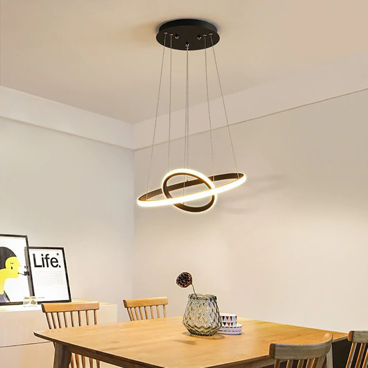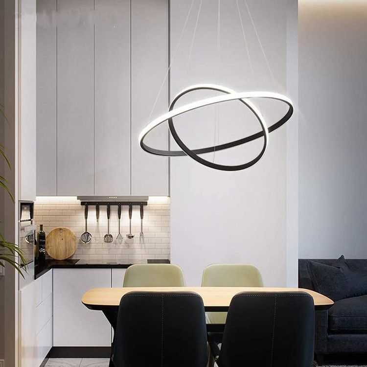 لوستر دو حلقه دایره به ابعاد 35-50 سانتیمتر ،رنگ بدنه مشکی استاتیک ،در سه نوع (آفتابی ،مهتابی و چند رنگ) ارائه میشود ،از امکانات ریموت می توان کم و زیاد کردن نور ،حالت شب ،اپلیکیشن موبایل(کم و زیاد کردن نور ،تغییر طیف نوری ،تنظیم زمان برای خاموش یا روشن شدن ) ارائه میشود